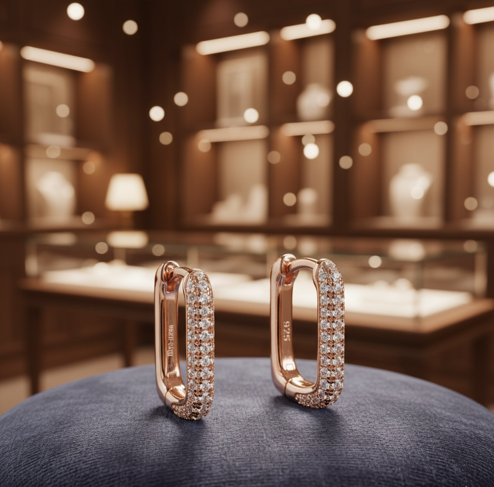 Chaque détail a été travaillé pour accompagner vos looks, que ce soit au travail, en sortie ou lors d’occasions spéciales. Le format carré allongé élance le visage, tandis que les zircons finement sertis apportent la touche lumineuse indispensable pour sublimer votre style sans effort.