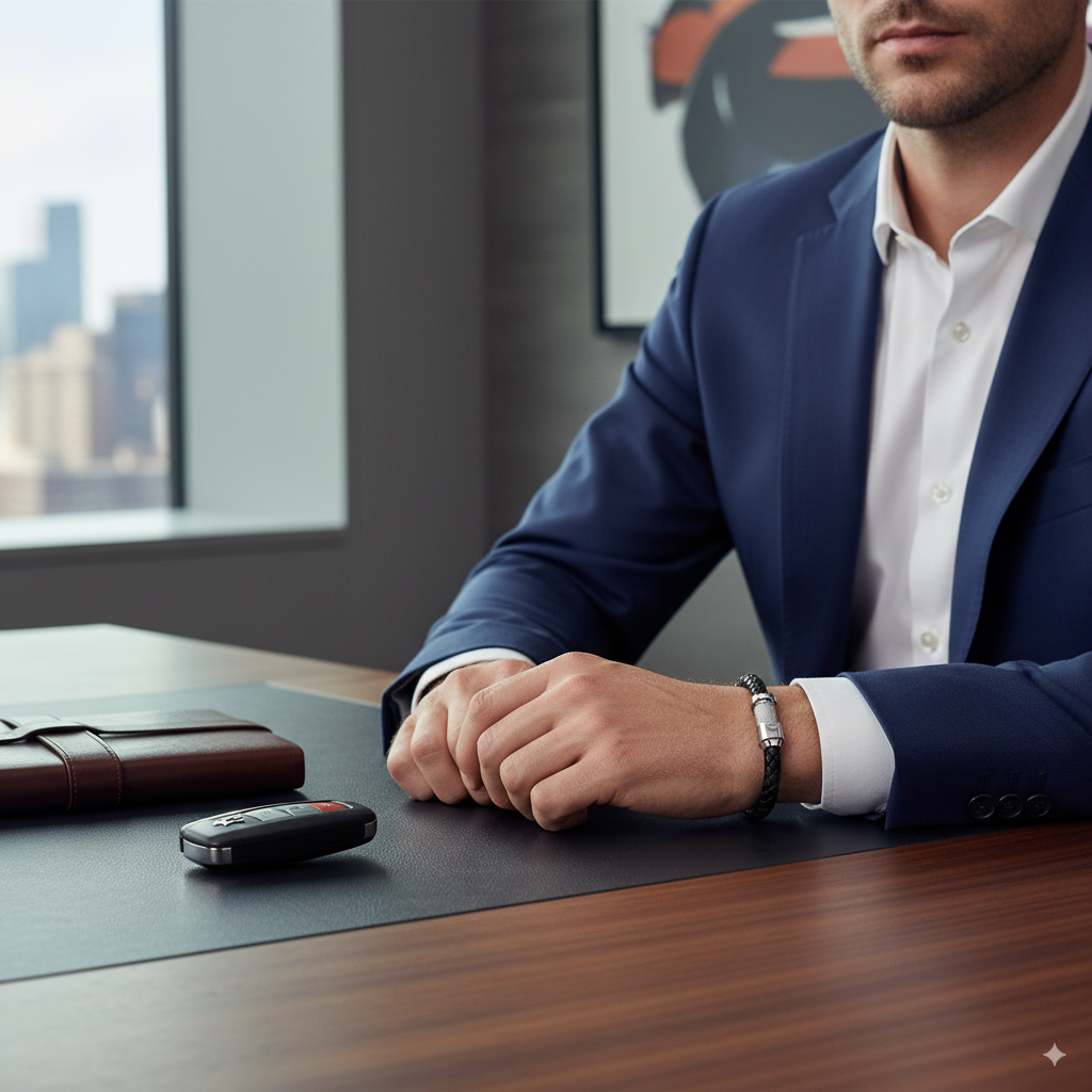 Confectionné en cuir tressé de première qualité, ce bijou incarne la distinction jusque dans les moindres détails. Son design intemporel en fait le cadeau idéal pour l’homme moderne qui apprécie l’élégance contemporaine et les symboles de prestige.
